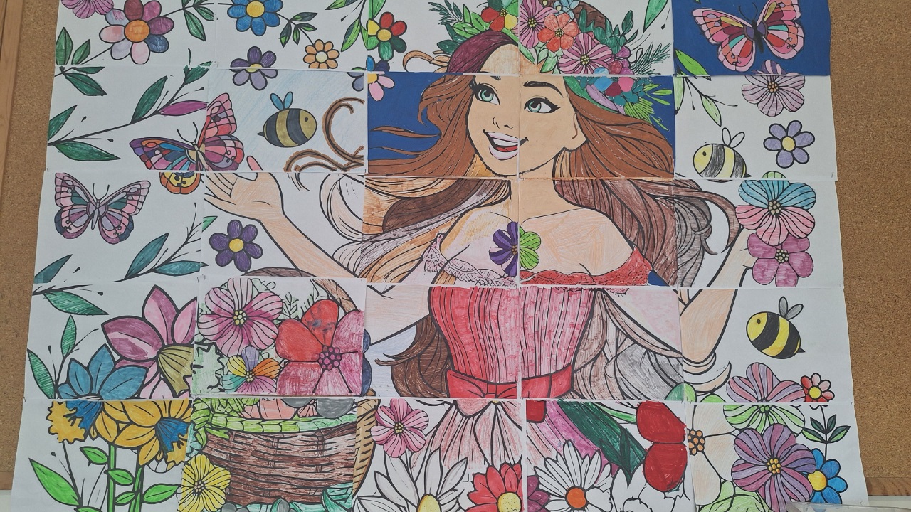 w tym kolorowe puzzle. Wraz z nauczycielami udekorowali swoje sale portretami Pani Wiosny.
