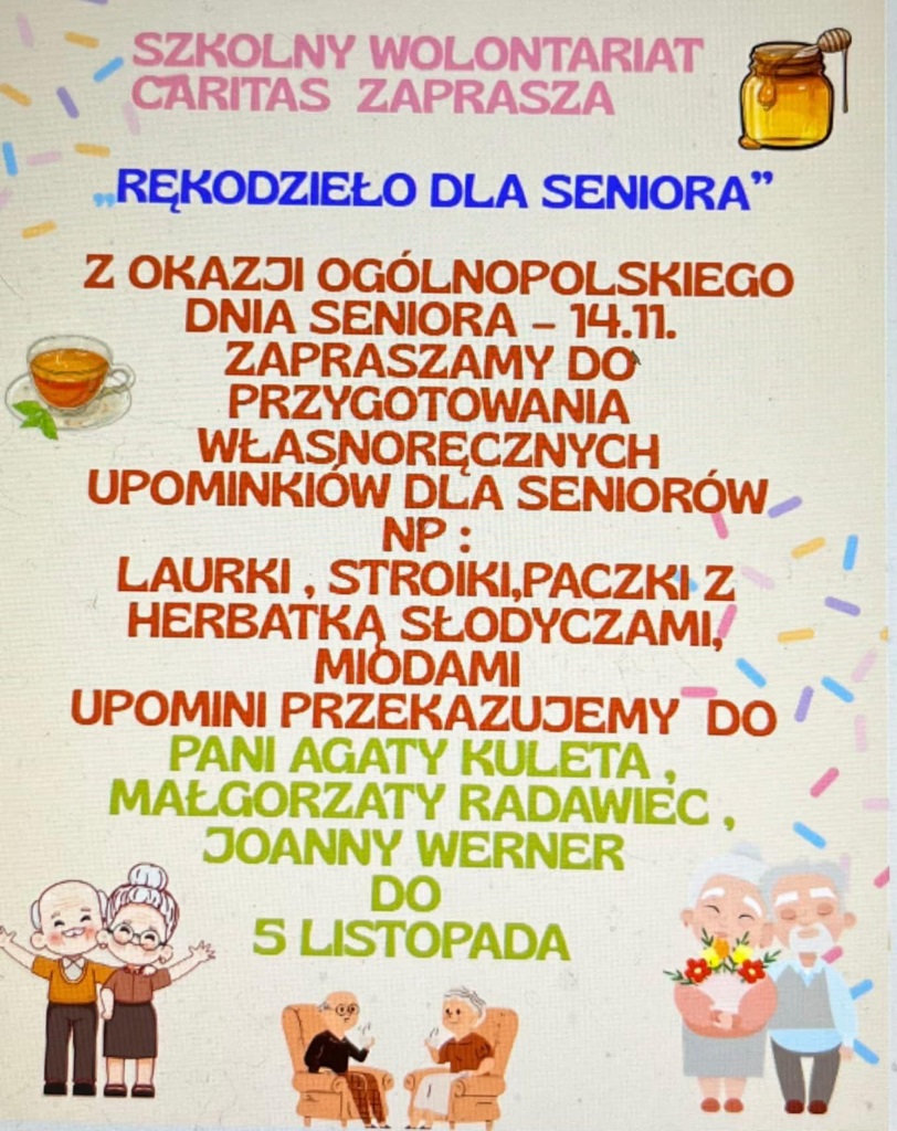 Szkolny wolontariat Caritas zaprasza do zbiórki z okazji Ogólnopolskiego Dnia Seniora !!!!