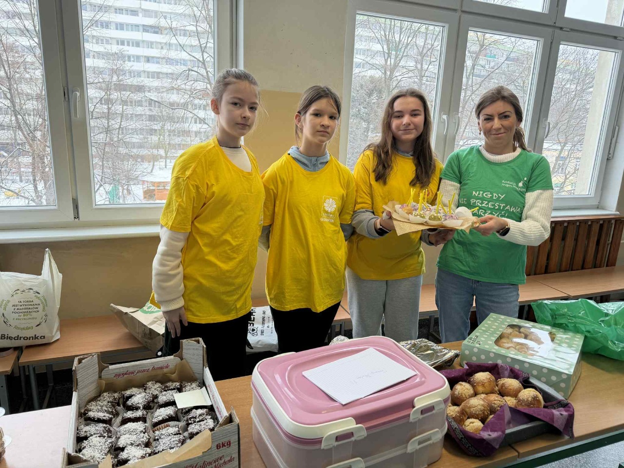 Dziękujemy osobom, które dostarczyły ciasta, zajmowały się obsługą stoiska oraz wszystkim, którzy wsparli akcje kupując w szkolnej kawiarence.